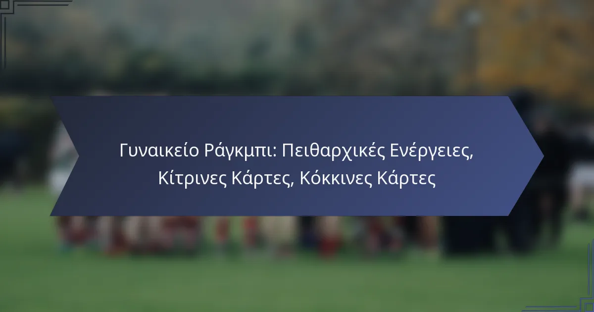 Οι πειθαρχικές ενέργειες στο γυναικείο ράγκμπι παίζουν καθοριστικό ρόλο στην εξασφάλιση του δίκαιου παιχνιδιού και της ασφάλειας των παικτριών, κυρίως μέσω της χρήσης κίτρινων και κόκκινων καρτών για την αντιμετώπιση της κακής συμπεριφοράς. Αυτές οι ποινές επηρεάζουν όχι μόνο τη δυναμική του παιχνιδιού αλλά απαιτούν επίσης από τις ομάδες να προσαρμοστούν στρατηγικά για να διατηρήσουν την ανταγωνιστικότητα. Ενώ είναι παρόμοιο με το ανδρικό ράγκμπι, η επιβολή και οι τάσεις γύρω από αυτές τις κάρτες μπορεί να διαφέρουν σημαντικά μεταξύ των δύο μορφών.